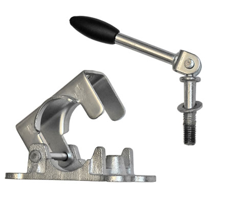 Klemmhalter zum Anschrauben mit abkippbarem Knebel.