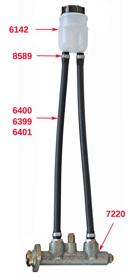 Brake fluid resistant connection hose between brake master cylinder and fluid tank.